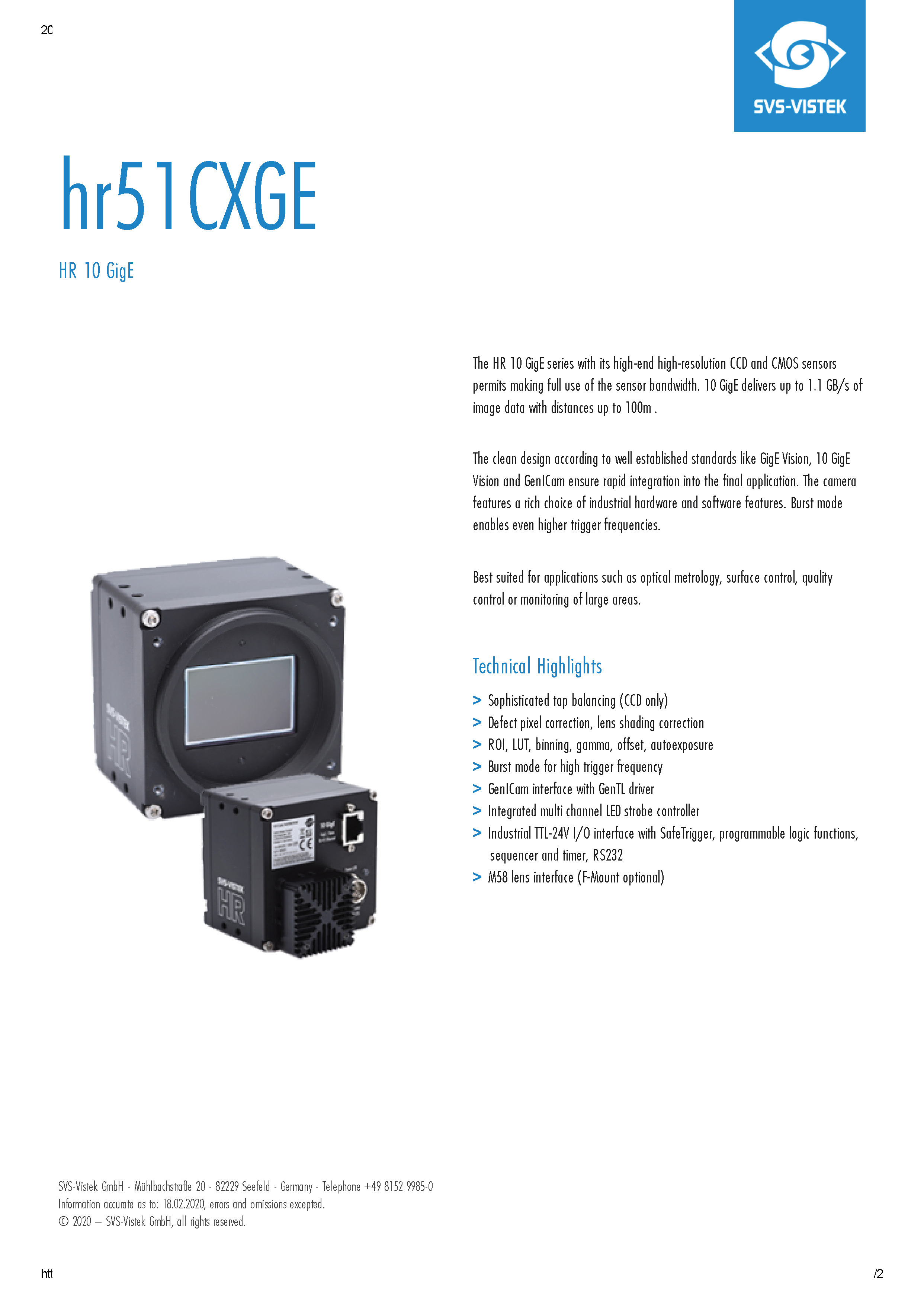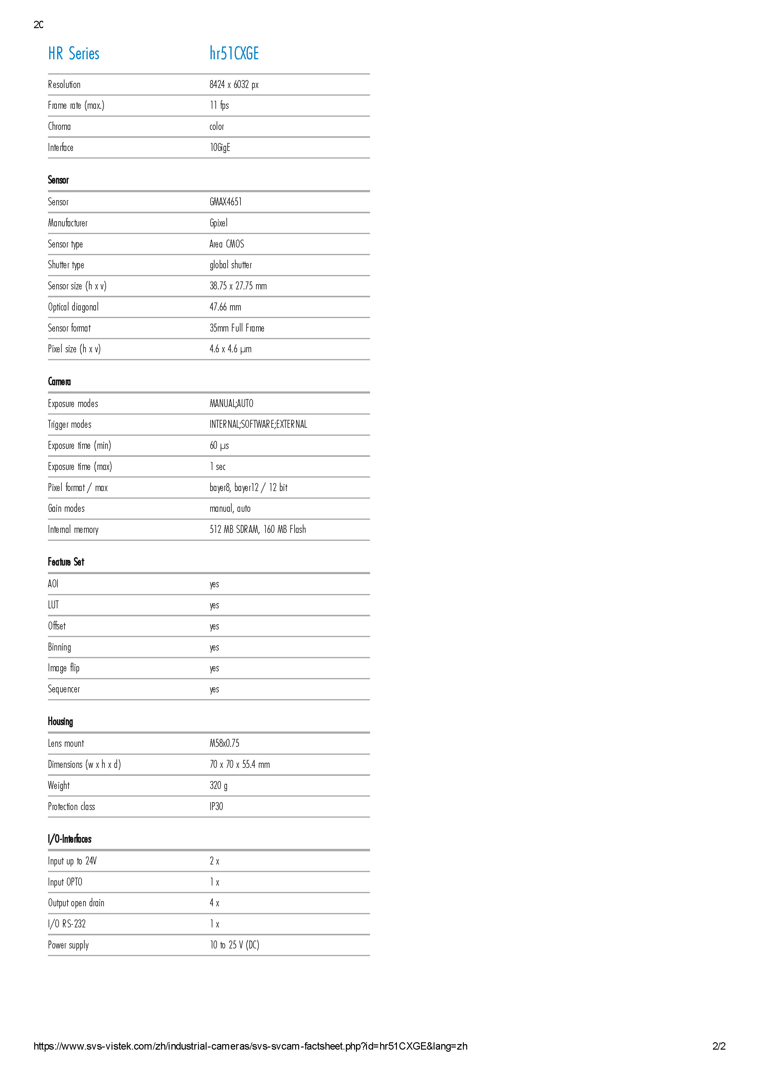SVS hr51CXGE 5000万工业相机