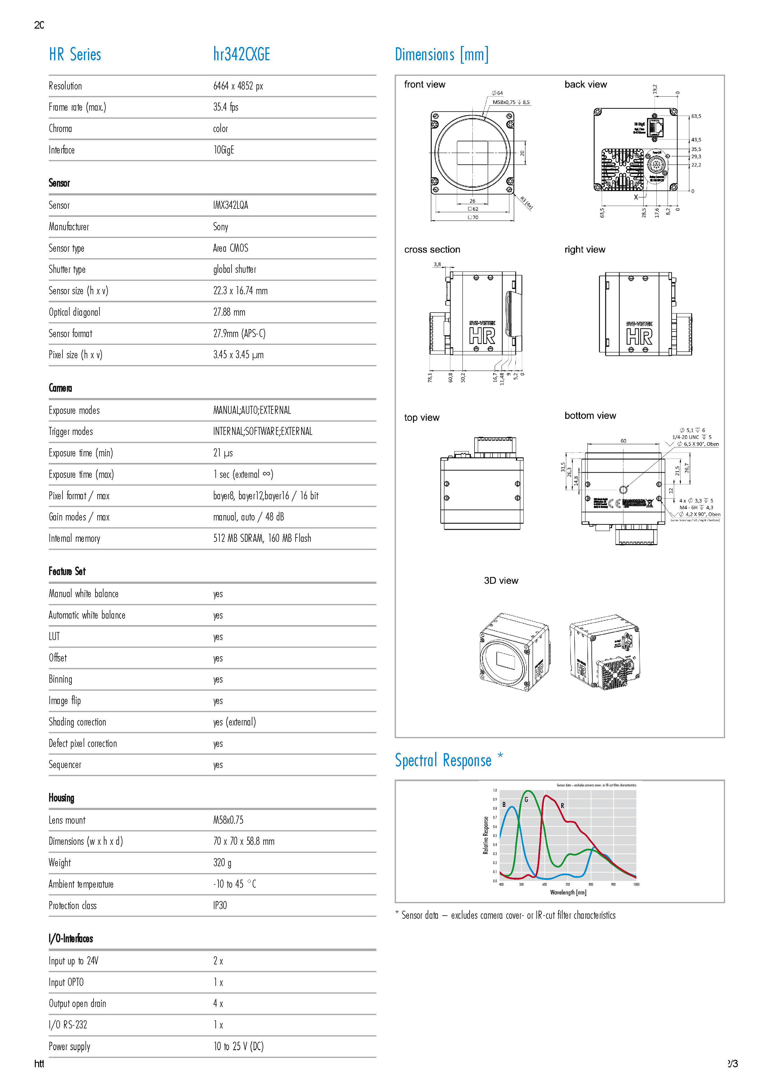 SVS hr342CXGE 3100万网口彩色工业相机