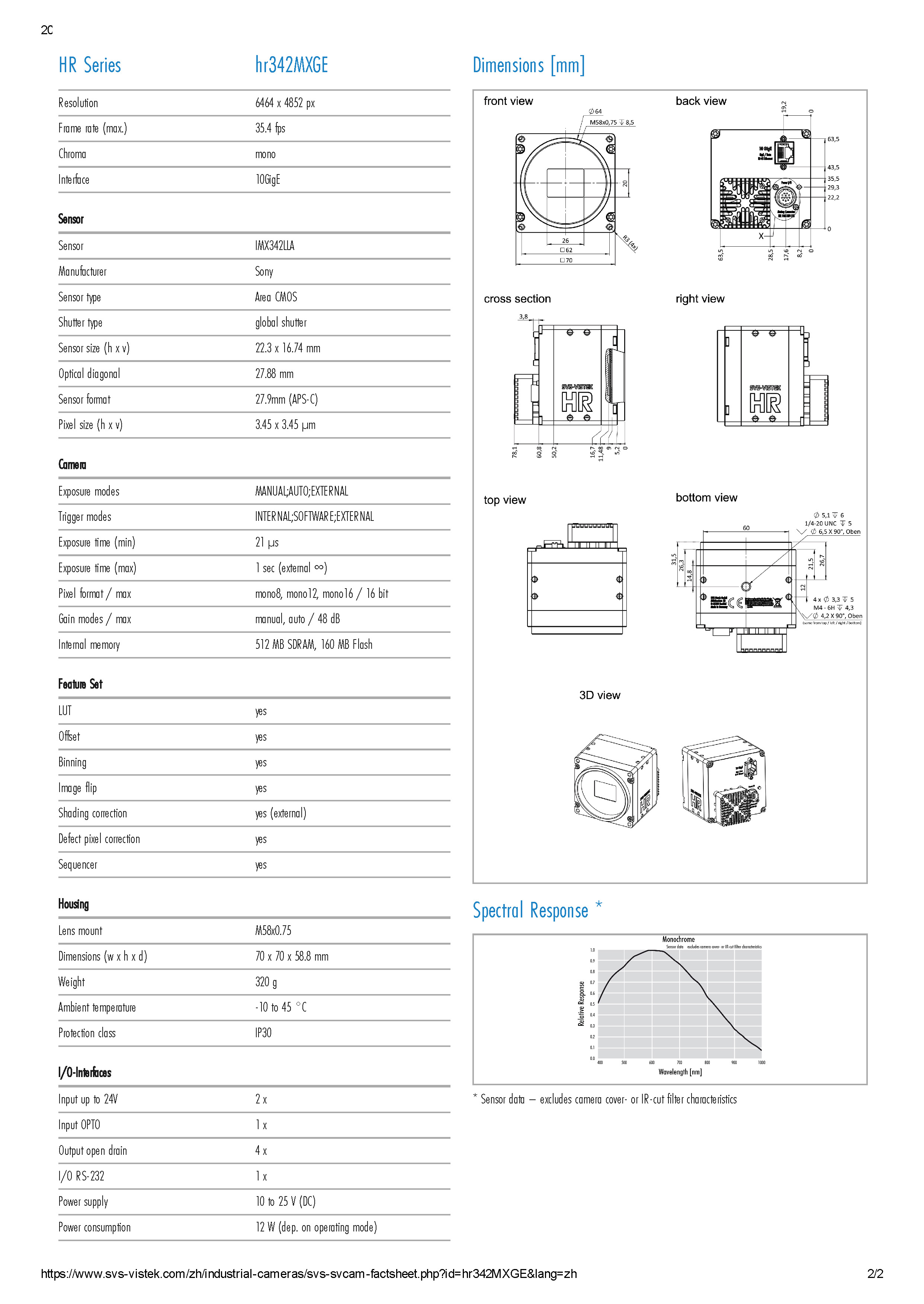 SVS hr342MXGE 3100万网口黑白工业相机