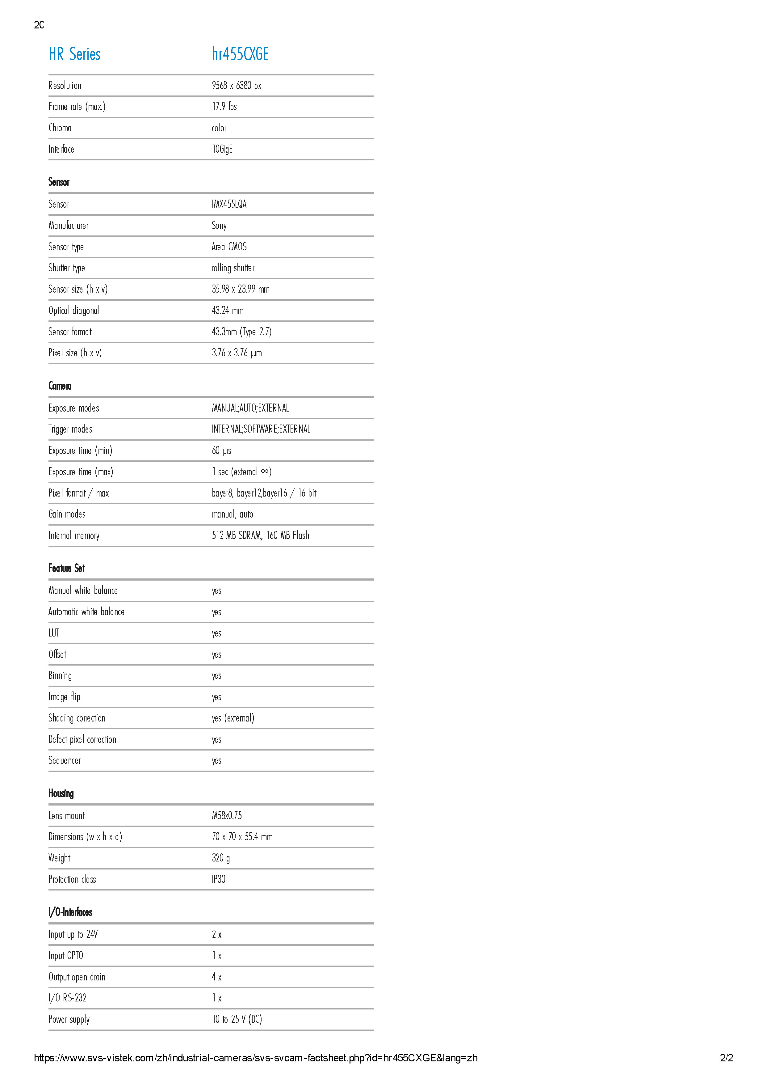 SVS hr455CXGE 6100万网口彩色工业相机