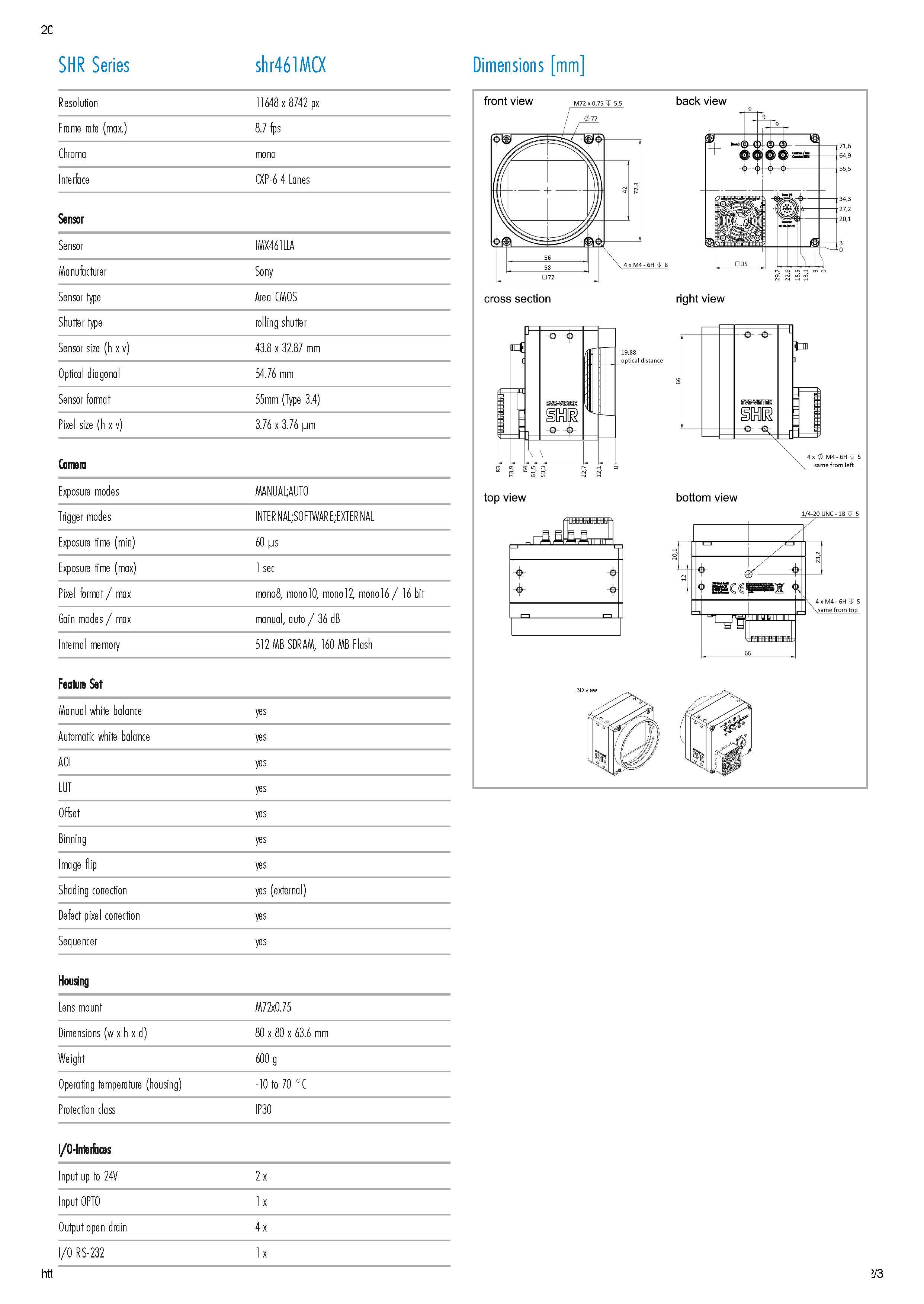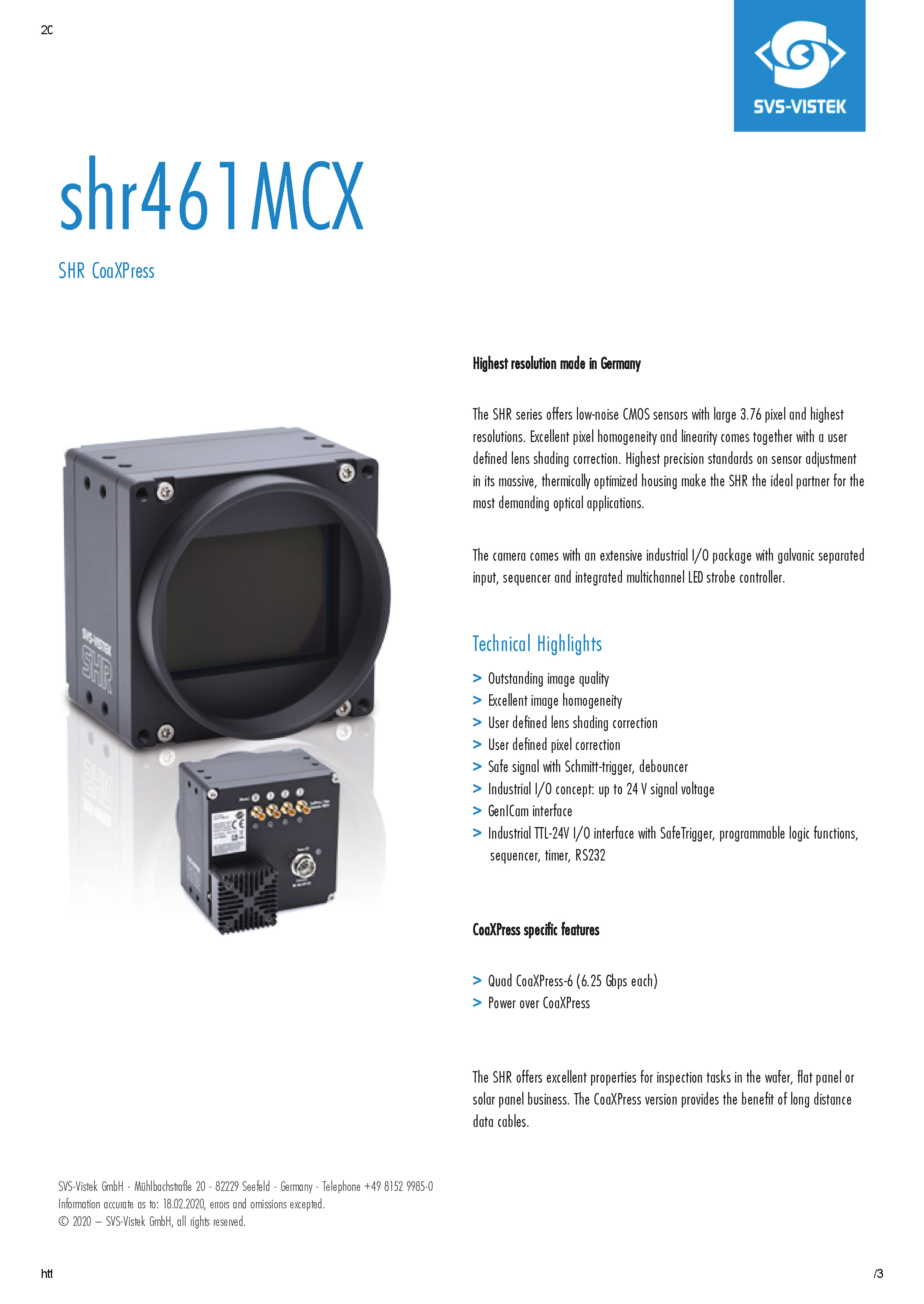 SVS hshr461MCX 1亿像素CXP黑白工业相机